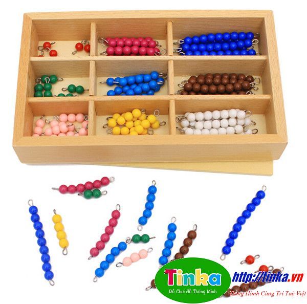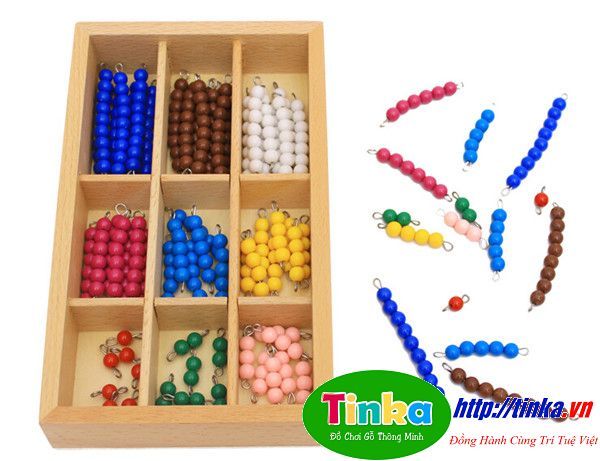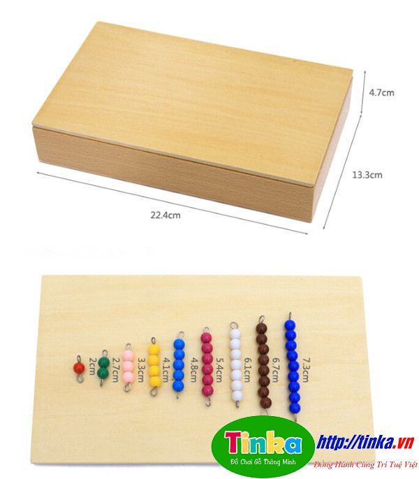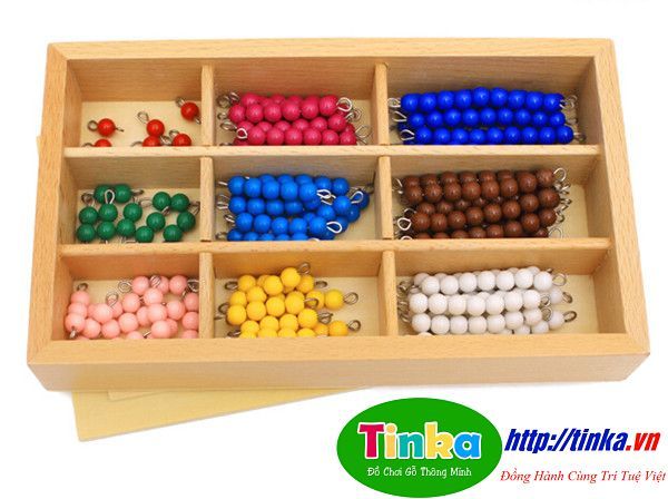 Bộ khay cườm màu làm bằng gỗ có đến 9 ô cườm với màu sắc khác nhau vô cùng bắt mắt. Có lẽ các bé gái sẽ đặt biệt thích bộ đồ chơi bằng cườm này. Với những đồ chơi bằng gỗ cho bé  có chuỗi cườm có độ dài ngắn khác nhau các bé có thể thỏa sức sáng tạo bằng cách trang trí lên quần áo, mũ, cặp sách, tự làm đồ trang sức đeo lên tay,…
